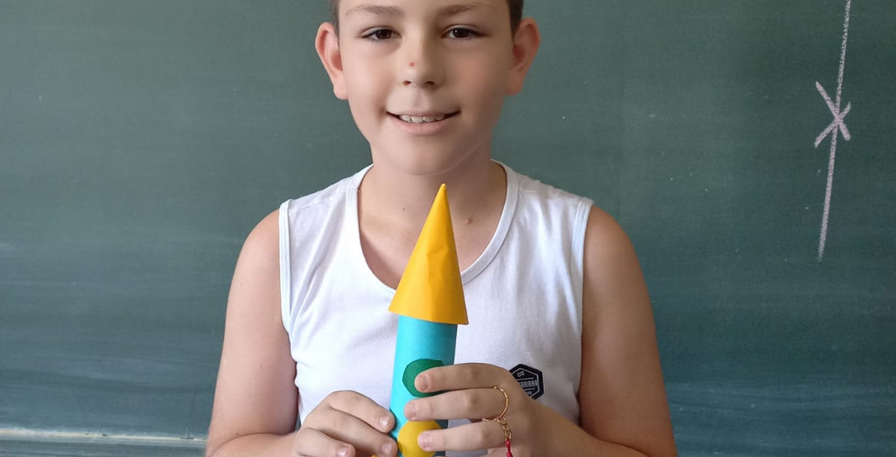 Durante alguns dias, a galerinha esperta do 4º Ano “A”, estudou em Filosofia sobre o tema “Conhecer o Mundo” e seus diferentes significados; as maneiras que percebemos o espaço; o espaço e o tempo e as relações espaciais. Em Língua Portuguesa, durante a Oficina de Produção Textual da última semana, redigiram histórias sobre viagens ao “espaço sideral”, detalhando como seria se tivessem a possibilidade de se transformarem em pequenos astronautas e descreveram como seria uma viagem fora da órbita da Terra. Assim, em Arte, aceitaram o desafio proposto pela professora Lidiane Menezes Monteiro de confeccionarem e montarem com materiais alternativos, pequenos foguetes. Os alunos precisaram de empenho, treino, dedicação e muita criatividade. Vale prestigiar os registros desses belos trabalhos.